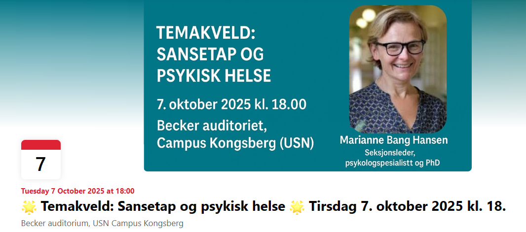 Temakveld: Sansetap og psykisk helse HOLD AV DATOEN